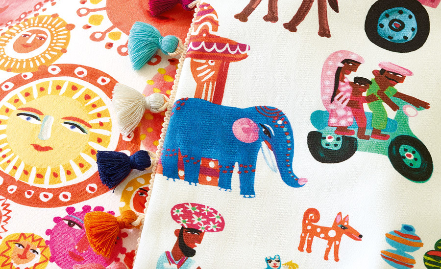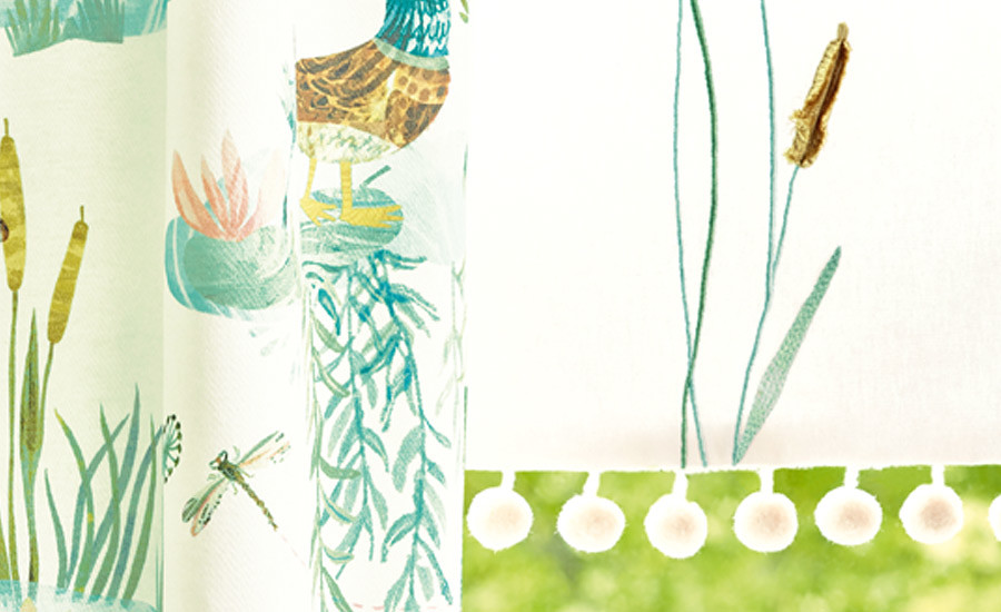 A Picturebook szövetek kiegészítésére és tökéletes kiegészítőjeként furcsa díszítőelemek, köztük játékos pomponok, karakteres fonatok és aranyos bojtok szolgálnak.